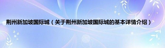 本文关于荆州新加坡国际城的基本详情介绍就讲解完毕,希望对大家有所帮助。