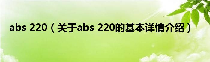本文关于abs 220的基本详情介绍就讲解完毕,希望对大家有所帮助。