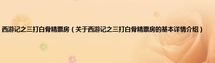 本文关于西游记之三打白骨精票房的基本详情介绍就讲解完毕,希望对大家有所帮助。