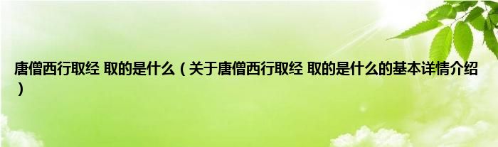 本文关于唐僧西行取经 取的是什么的基本详情介绍就讲解完毕,希望对大家有所帮助。