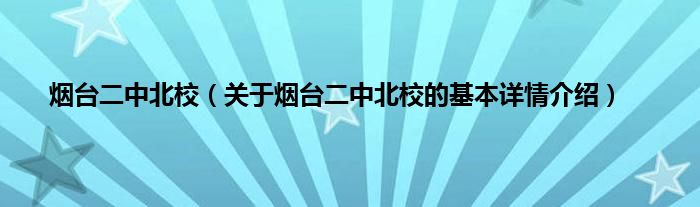 本文关于烟台二中北校的基本详情介绍就讲解完毕,希望对大家有所帮助。