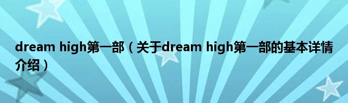 本文关于dream high第一部的基本详情介绍就讲解完毕,希望对大家有所帮助。