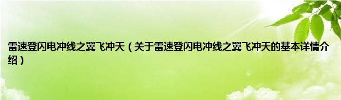 本文关于雷速登闪电冲线之翼飞冲天的基本详情介绍就讲解完毕,希望对大家有所帮助。