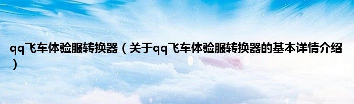 本文关于qq飞车体验服转换器的基本详情介绍就讲解完毕,希望对大家有所帮助。