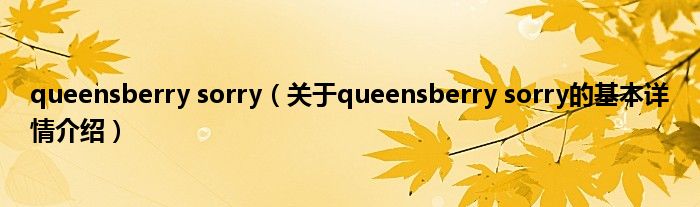 本文关于queensberry sorry的基本详情介绍就讲解完毕,希望对大家有所帮助。