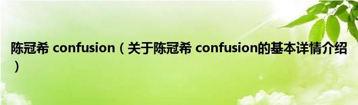 本文关于陈冠希 confusion的基本详情介绍就讲解完毕,希望对大家有所帮助。