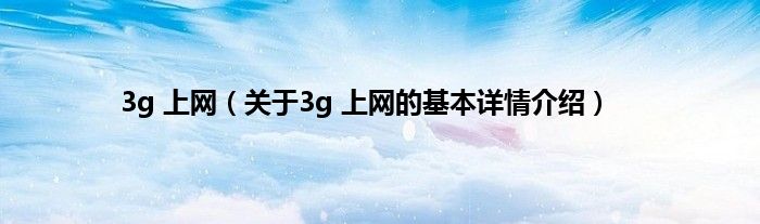 本文关于3g 上网的基本详情介绍就讲解完毕,希望对大家有所帮助。