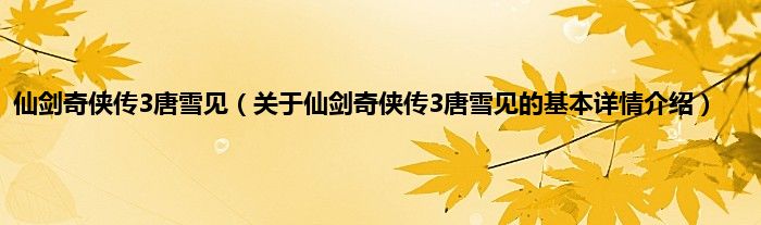 本文关于仙剑奇侠传3唐雪见的基本详情介绍就讲解完毕,希望对大家有所帮助。