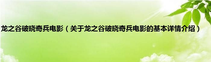 本文关于龙之谷破晓奇兵电影的基本详情介绍就讲解完毕,希望对大家有所帮助。