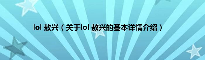 本文关于lol 敖兴的基本详情介绍就讲解完毕,希望对大家有所帮助。
