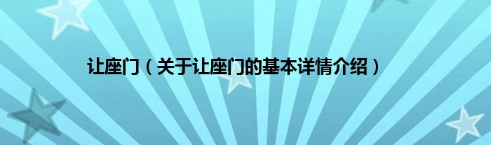 本文关于让座门的基本详情介绍就讲解完毕,希望对大家有所帮助。