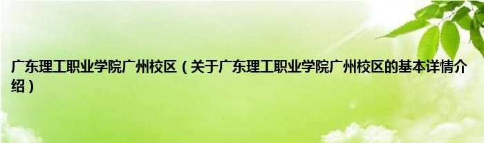 本文关于广东理工职业学院广州校区的基本详情介绍就讲解完毕,希望对大家有所帮助。