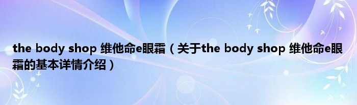 本文关于the body shop 维他命e眼霜的基本详情介绍就讲解完毕,希望对大家有所帮助。