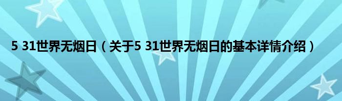 本文关于5 31世界无烟日的基本详情介绍就讲解完毕,希望对大家有所帮助。