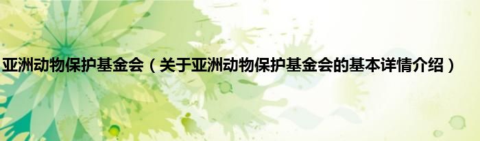 本文关于亚洲动物保护基金会的基本详情介绍就讲解完毕,希望对大家有所帮助。