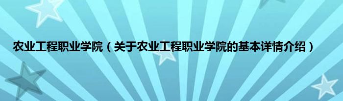 本文关于农业工程职业学院的基本详情介绍就讲解完毕,希望对大家有所帮助。