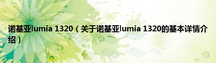 本文关于诺基亚lumia 1320的基本详情介绍就讲解完毕,希望对大家有所帮助。