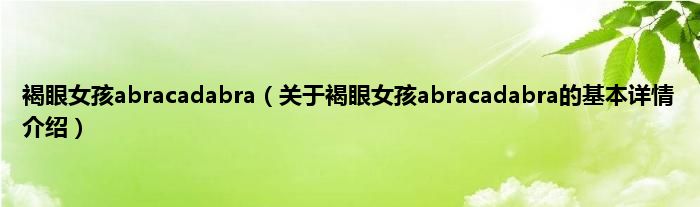 本文关于褐眼女孩abracadabra的基本详情介绍就讲解完毕,希望对大家有所帮助。