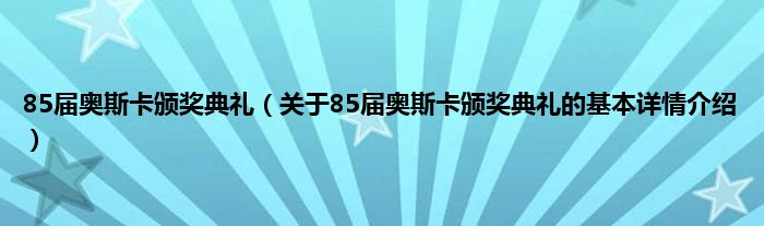 本文关于85届奥斯卡颁奖典礼的基本详情介绍就讲解完毕,希望对大家有所帮助。