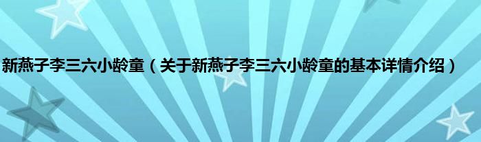 本文关于新燕子李三六小龄童的基本详情介绍就讲解完毕,希望对大家有所帮助。