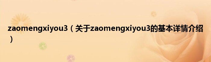 本文关于zaomengxiyou3的基本详情介绍就讲解完毕,希望对大家有所帮助。