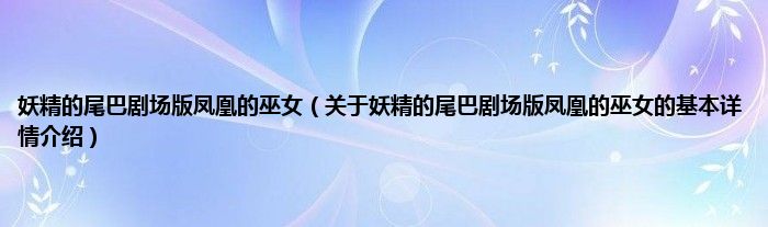本文关于妖精的尾巴剧场版凤凰的巫女的基本详情介绍就讲解完毕,希望对大家有所帮助。