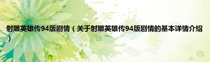 本文关于射雕英雄传94版剧情的基本详情介绍就讲解完毕,希望对大家有所帮助。