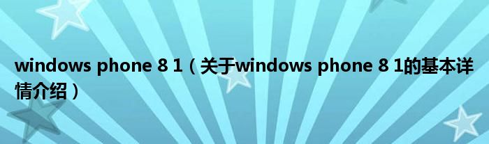 本文关于windows phone 8 1的基本详情介绍就讲解完毕,希望对大家有所帮助。