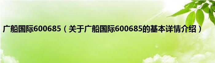本文关于广船国际600685的基本详情介绍就讲解完毕,希望对大家有所帮助。
