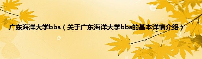 本文关于广东海洋大学bbs的基本详情介绍就讲解完毕,希望对大家有所帮助。