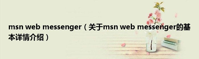本文关于msn web messenger的基本详情介绍就讲解完毕,希望对大家有所帮助。