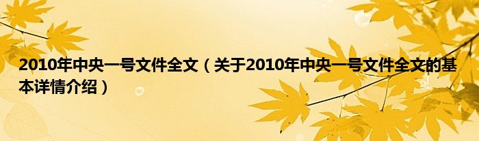 本文关于2010年中央一号文件全文的基本详情介绍就讲解完毕,希望对大家有所帮助。