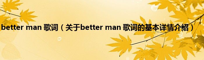 本文关于better man 歌词的基本详情介绍就讲解完毕,希望对大家有所帮助。
