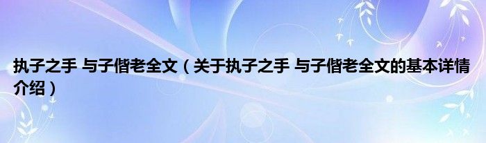 本文关于执子之手 与子偕老全文的基本详情介绍就讲解完毕,希望对大家有所帮助。