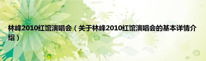 本文关于林峰2010红馆演唱会的基本详情介绍就讲解完毕,希望对大家有所帮助。