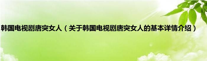 本文关于韩国电视剧唐突女人的基本详情介绍就讲解完毕,希望对大家有所帮助。