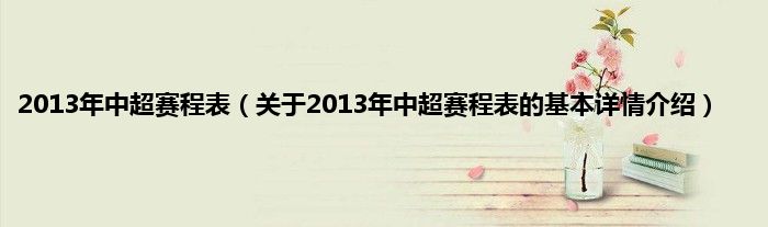 本文关于2013年中超赛程表的基本详情介绍就讲解完毕,希望对大家有所帮助。
