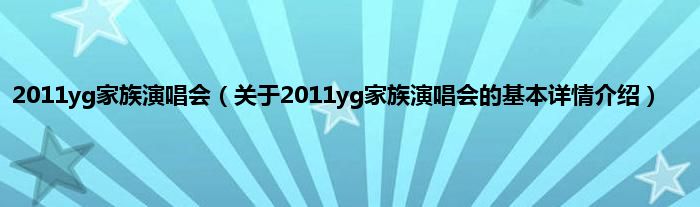 本文关于2011yg家族演唱会的基本详情介绍就讲解完毕,希望对大家有所帮助。