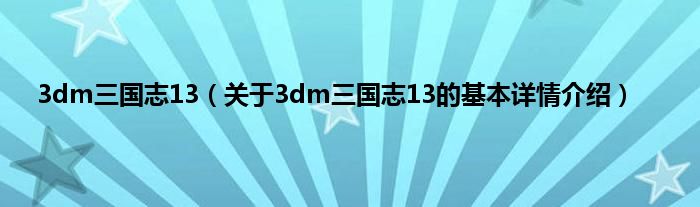 本文关于3dm三国志13的基本详情介绍就讲解完毕,希望对大家有所帮助。