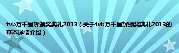 本文关于tvb万千星辉颁奖典礼2013的基本详情介绍就讲解完毕,希望对大家有所帮助。