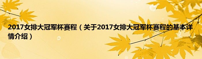 本文关于2017女排大冠军杯赛程的基本详情介绍就讲解完毕,希望对大家有所帮助。