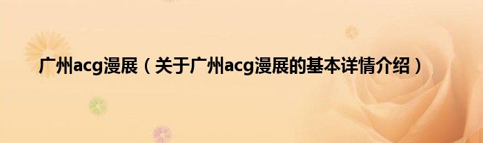 本文关于广州acg漫展的基本详情介绍就讲解完毕,希望对大家有所帮助。