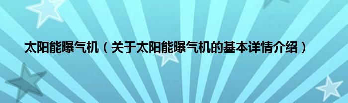 本文关于太阳能曝气机的基本详情介绍就讲解完毕,希望对大家有所帮助。