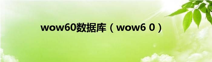 大家好,小问来为大家解答以上问题。wow60数据库,wow6 0这个很多人还不知道,现在让我们一起来看看吧!