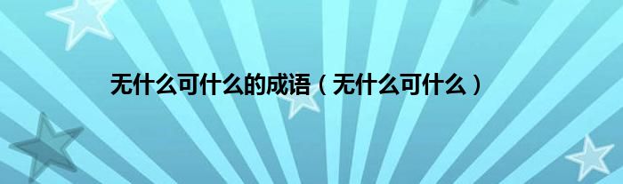 以上就是【无什么可什么的成语,无什么可什么】相关内容。