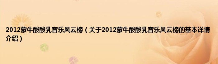 本文关于2012蒙牛酸酸乳音乐风云榜的基本详情介绍就讲解完毕,希望对大家有所帮助。
