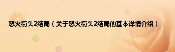 本文关于怒火街头2结局的基本详情介绍就讲解完毕,希望对大家有所帮助。