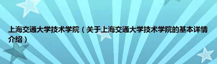 本文关于上海交通大学技术学院的基本详情介绍就讲解完毕,希望对大家有所帮助。