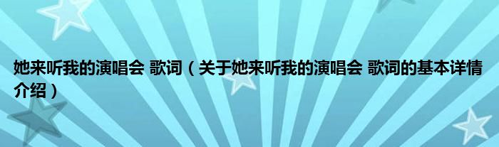 本文关于她来听我的演唱会 歌词的基本详情介绍就讲解完毕,希望对大家有所帮助。