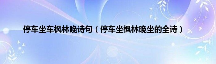 以上就是【停车坐车枫林晚诗句,停车坐枫林晚坐的全诗】相关内容。